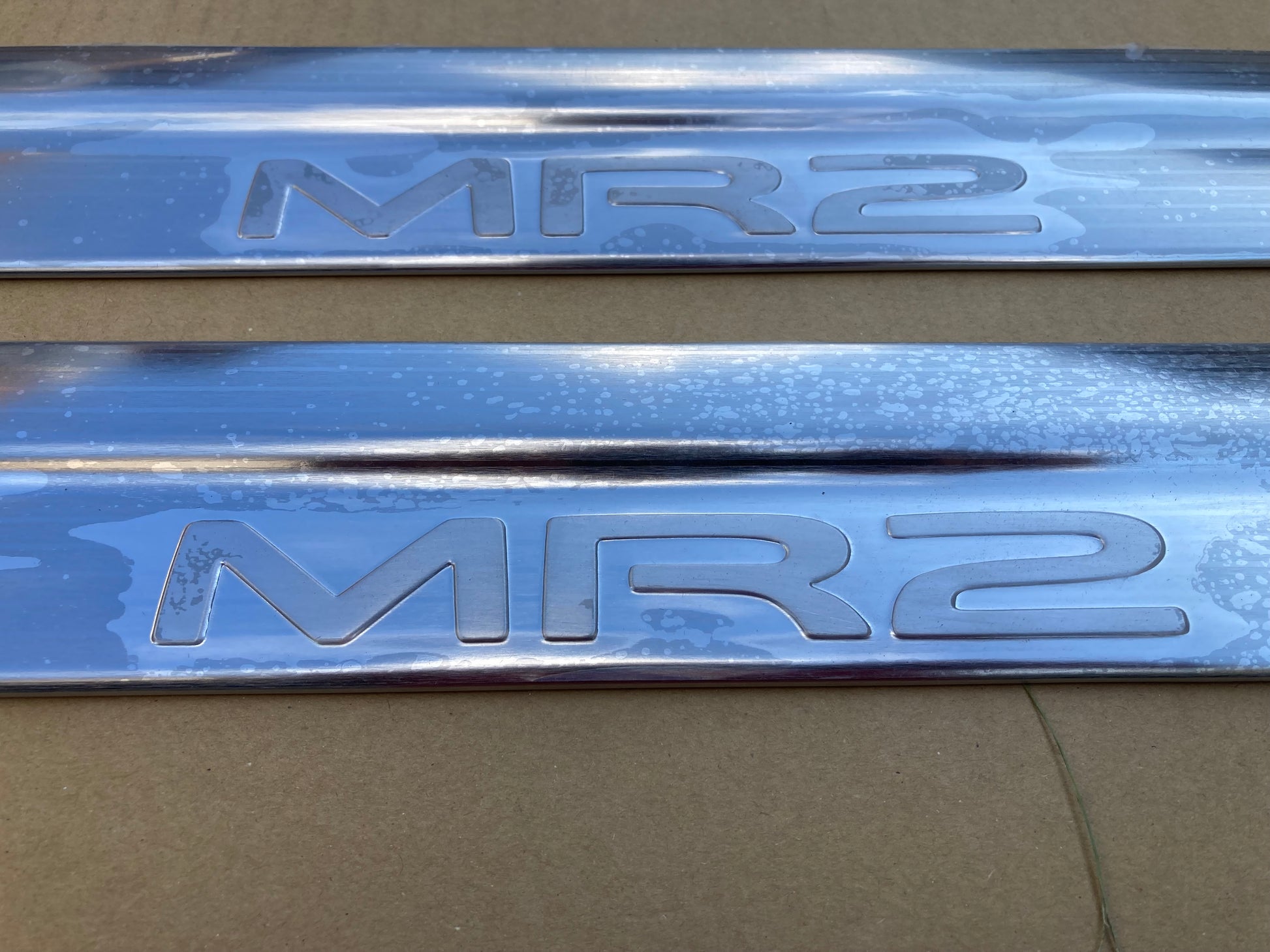 Toyota MR2 SW20 GT/Anniversary stainless steel scuff trims. Brand new genuine Toyota parts.